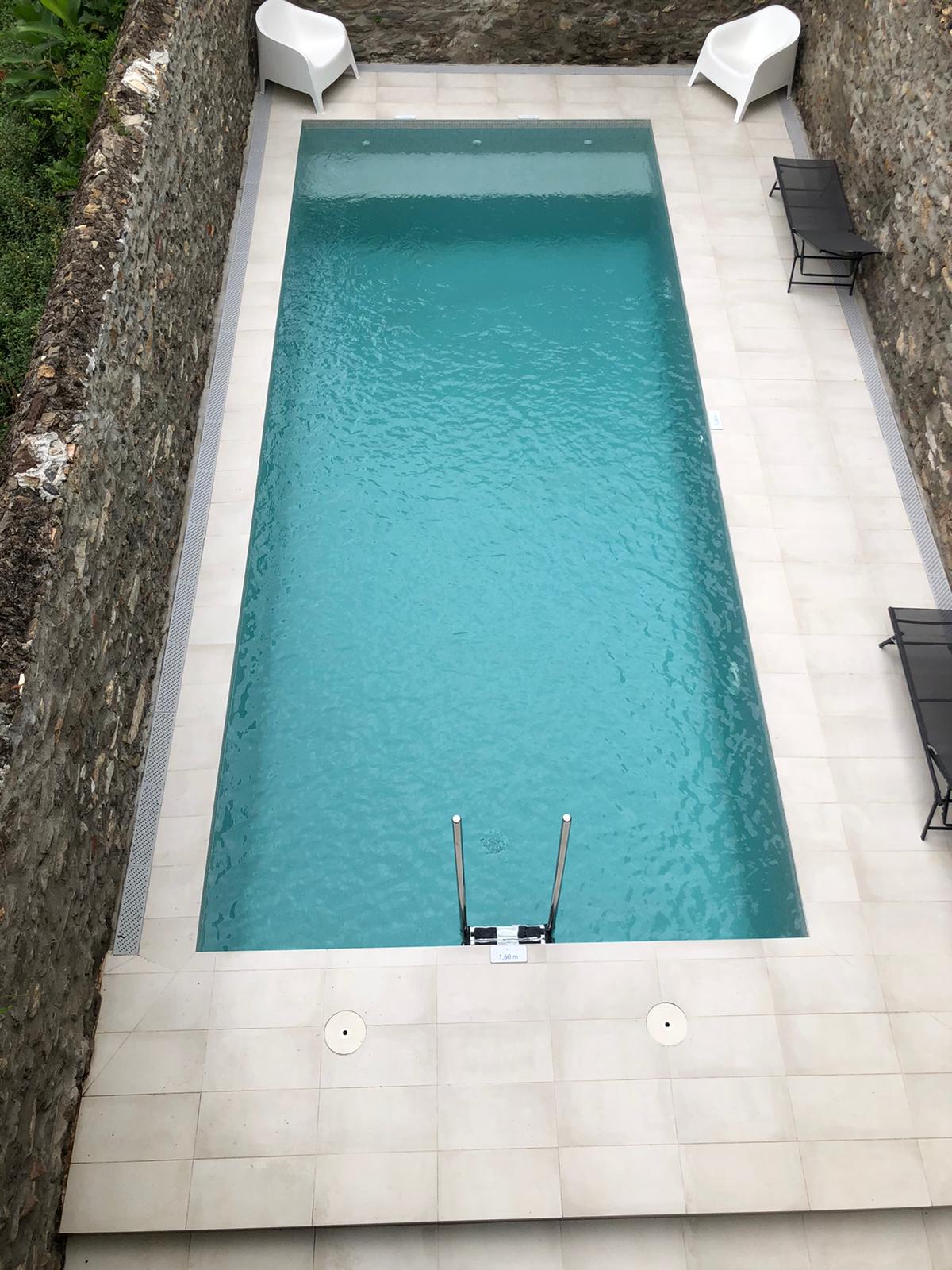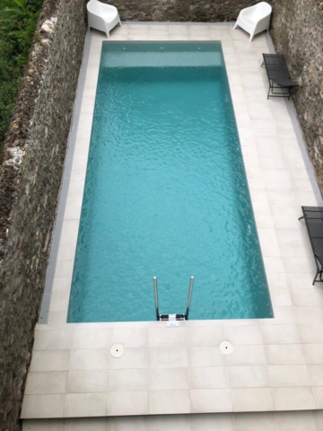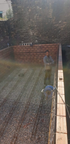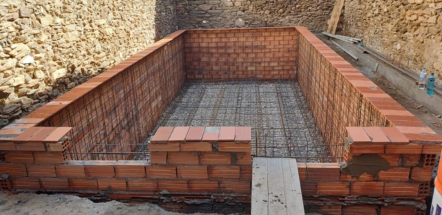 Creation of the Hotel Carbonell pool in Llança. Gresite and grout. Installation of motors and filters in the pool room.